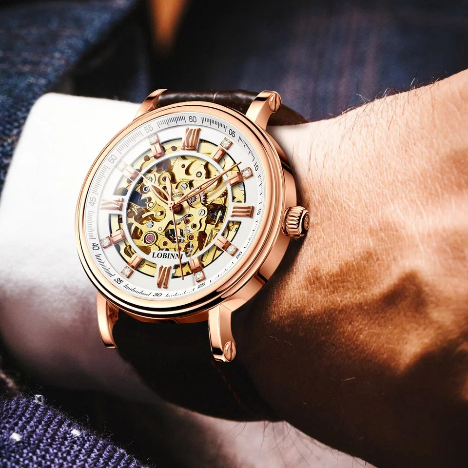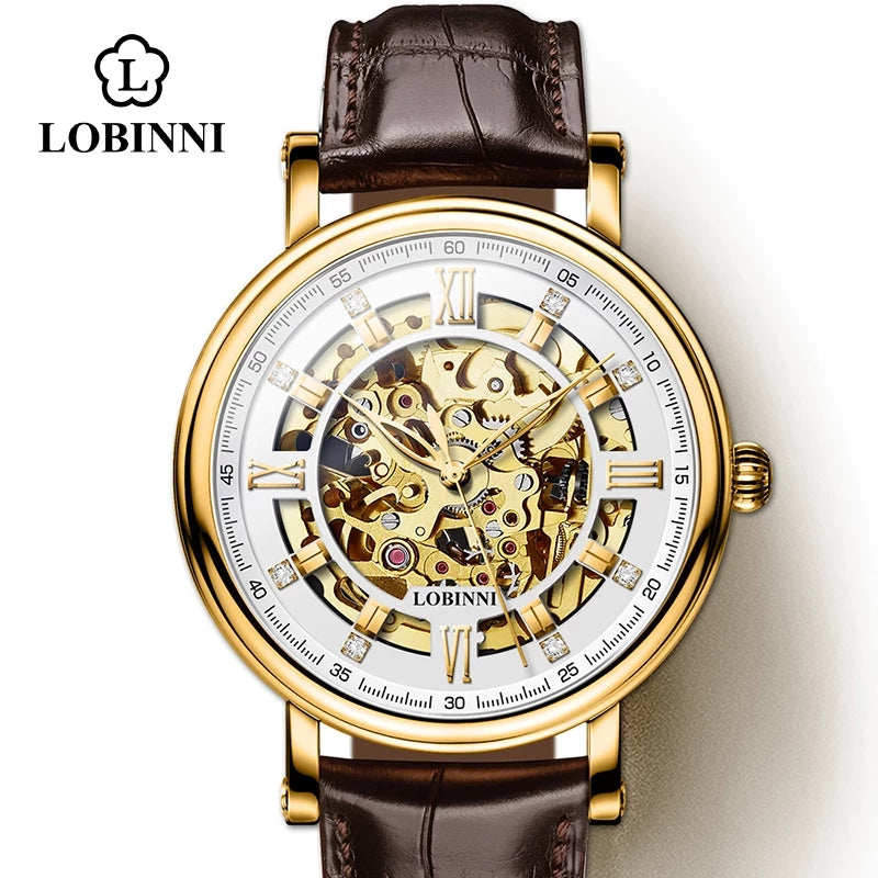 LOBINNI Rome dial watches mens 2019 relogio masculino Automatic gear Mechanical steel orologio Brands Leather Cost wrist watch