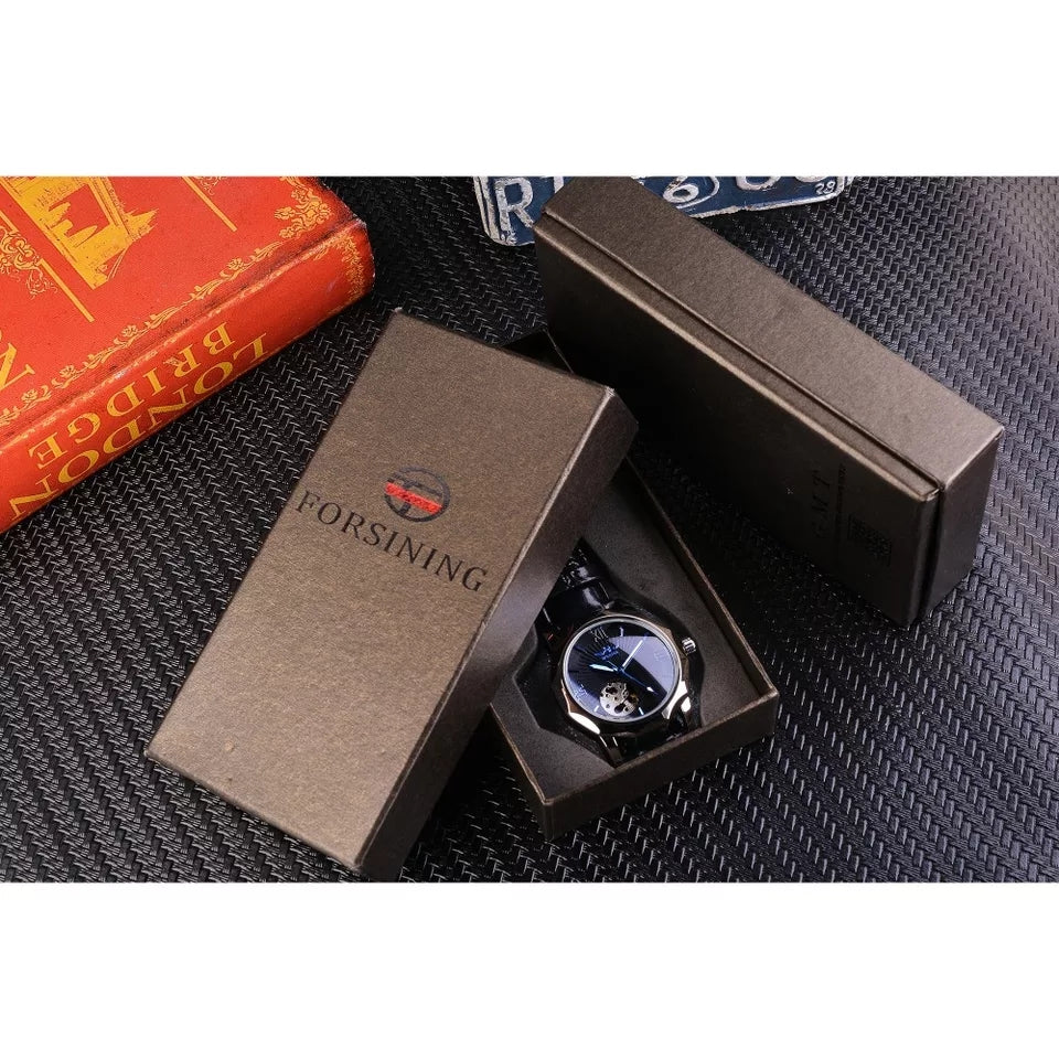 Winner Blue Ocean Geometry Design Transparent Skeleton Dial Mens Watch Top Brand Luxury Automatic Fashion Mechanical Watch Clock